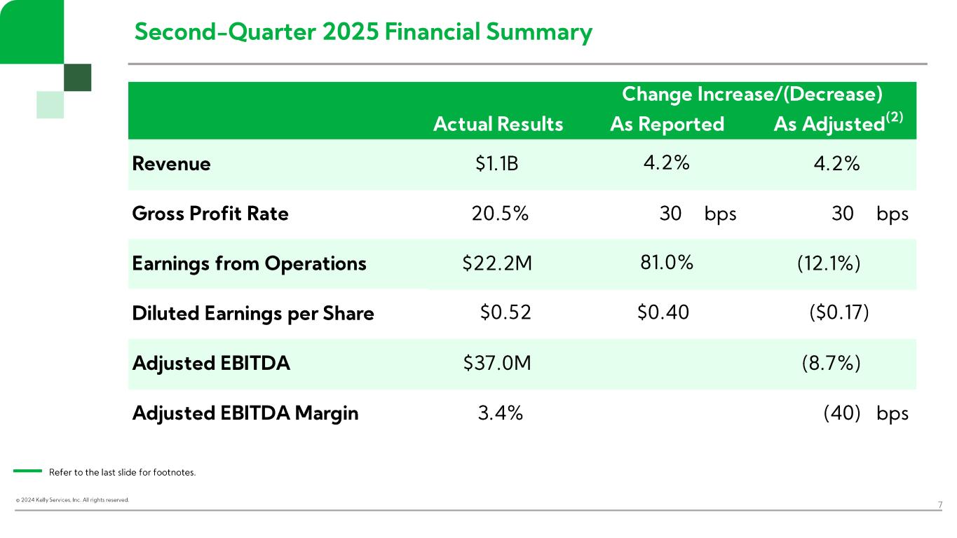 TROY, Mich. (August 7, 2025) – Kelly (Nasdaq: KELYA, KELYB), a leading specialty talent solutions provider, today announced results for the second quarter of 2025.