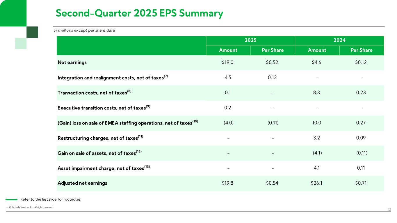 (4) (Gain) loss on sale of EMEA staffing operations represents the gains and losses recorded in each period as a result of the sale in January 2024. The gain on the sale in the second quarter of 2025 is the result of the Company receiving the remaining proceeds from working capital and other adjustments, which exceeded the recorded receivable.
